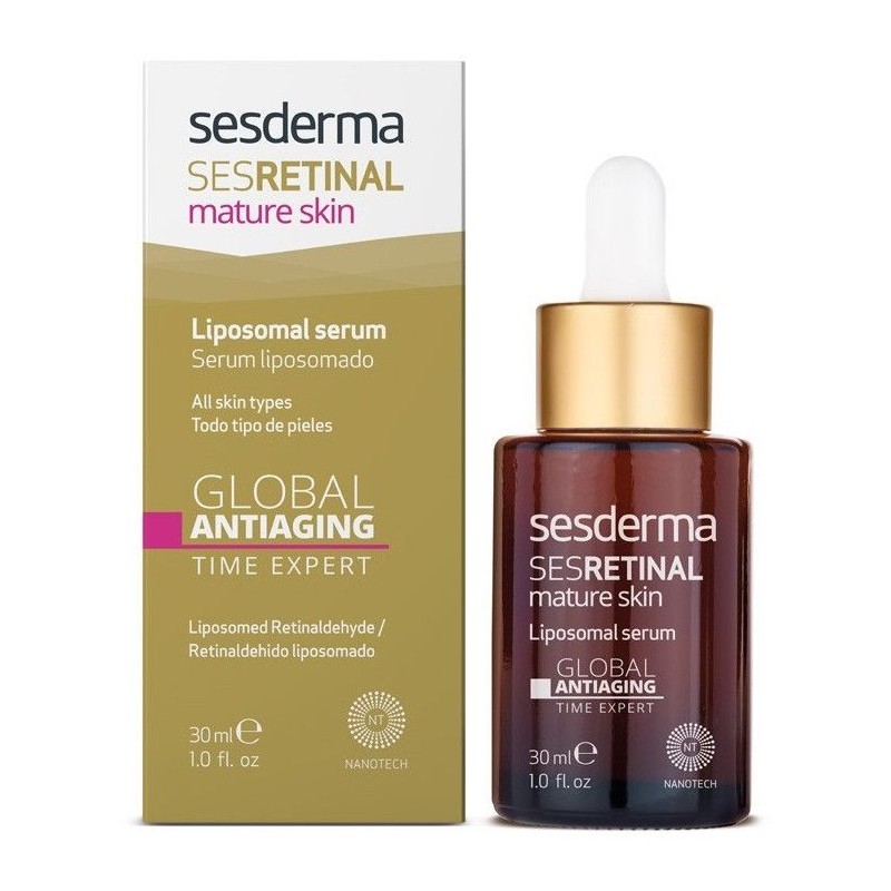 PREVIENE Y CORRIGE LOS SIGNOS DE LA EDAD EN PIELES MADURAS: LÍNEAS DE EXPRESIÓN, ARRUGAS, PÉRDIDA DE ELASTICIDAD, LUMINOSIDAD Y TONICIDAD. CON LA LÍNEA SESRETINAL MATURE SKIN LA PIEL RECUPERA SU JUVENTUD GRACIAS AL PODER DE SUS ACTIVOS LIPOSOMADOS QUE LE PERMITEN CONSTRUIR SU PROPIA BELLEZA CONSIGUIENDO UNA PIEL SUAVE, LISA Y SIN ARRUGAS. LAS NUMEROSAS PROPIEDADES REGENERADORAS Y RENOVADORAS DEL RETINALDEHÍDO HACEN QUE SEA EL ACTIVO MÁS COMPLETO PARA EL CUIDADO DE LA PIEL ENVEJECIDA Y LA PIEL CON TENDENCIA ACNEICA. POR ELLO, LA ENCAPSULACIÓN DEL ACTIVO EN BURBUJAS LIPÍDICAS MEJORA SU EFICACIA Y TOLERANCIA. ADEMÁS, COMPLETA SU FÓRMULA CON BIORRETINOIDES CON ACTIVIDAD “RETINOL LIKE” Y FACTORES DE CRECIMIENTO PARA POTENCIAR SU EFECTIVIDAD.