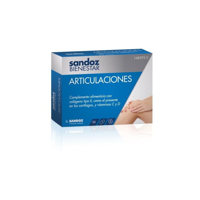SANDOZ BIENESTAR ARTICULACIONES ES UN COMPLEMENTO ALIMENTICIO QUE CONTIENE COLÁGENO TIPO II NO DESNATURALIZADO Y VITAMINAS C Y D. EL COLÁGENO ES LA PROTEÍNA MÁS ABUNDANTE DEL ORGANISMO Y SE CARACTERIZA PRINCIPALMENTE POR SU NOTABLE RESISTENCIA. SU PRINCIPAL FUNCIÓN ES FORMAR UNA MATRIZ DE SUSTENTACIÓN PARA ÓRGANOS Y TEJIDOS ADEMÁS DE SER EL RESPONSABLE DE LA FIRMEZA, ELASTICIDAD E INTEGRIDAD DE ESTRUCTURAS COMO LOS TENDONES, ARTICULACIONES Y LIGAMENTOS.