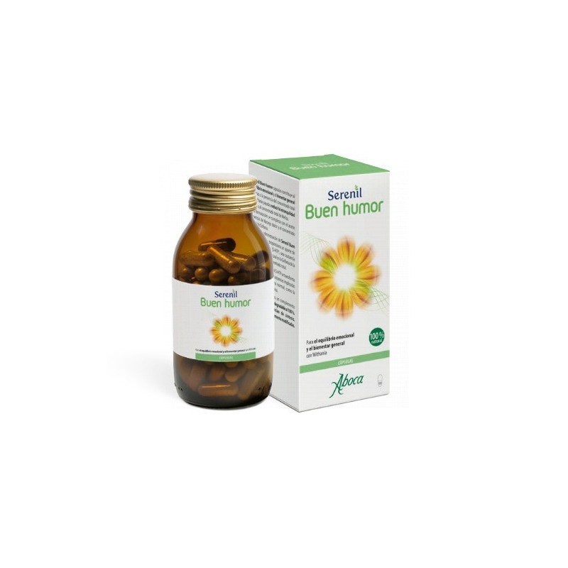 SERENIL BUEN HUMOR CÁPSULAS CONTRIBUYE AL EQUILIBRIO EMOCIONAL Y AL BIENESTAR GENERAL GRACIAS A LA PRESENCIA DEL CONCENTRADO TOTAL DE WITHANIA Y AYUDA A REDUCIR LA INTRANQUILIDAD GRACIAS AL CONCENTRADO TOTAL DE MELISA. SU FORMULACIÓN SE COMPLETA CON EL ACEITE ESENCIAL DE NARANJO DULCE Y EL CONCENTRADO TOTAL DE GRIFONIA. ADEMÁS, LA ADMINISTRACIÓN DE SERENIL BUEN HUMOR CÁPSULAS PROPORCIONA UN APORTE DE 5-HIDROXITRIPTÓFANO (5-HTP), UNA SUSTANCIA PRESENTE DE FORMA NATURAL EN LA GRIFONIA DE LA QUE SE OBTIENE EL CONCENTRADO TOTAL.DENTRO DEL ORGANISMO, EL 5-HTP SE TRANSFORMA NATURALMENTE EN OTRAS SUSTANCIAS IMPLICADAS EN EL ESTADO DE ÁNIMO NORMAL, COMO LA SEROTONINA Y LA MELATONINA. SERENIL BUEN HUMOR ES UN COMPLEMENTO ALIMENTICIO NATURAL Y BIODEGRADABLE AL 100 %. NO CONTIENE SUSTANCIAS DE SÍNTESIS, SEMISÍNTESIS O GENÉTICAMENTE MODIFICADAS.MODO DE EMPLEO:SE ACONSEJA TOMAR 2 CÁPSULAS 2 VECES AL DÍA, PREFERIBLEMENTE POR LA MAÑANA Y POR LA NOCHE.ADVERTENCIASNO SUPERAR LAS DOSIS RECOMENDADAS. LOS COMPLEMENTOS ALIMENTICIOS NO PUEDEN CONSIDERARSE UN SUSTITUTO DE UNA DIETA VARIADA Y EQUILIBRADA Y DEBEN SER UTILIZADOS EN EL ÁMBITO DE UN ESTILO DE VIDA SANO. MANTENER EL PRODUCTO FUERA DEL ALCANCE DE LOS NIÑOS MÁS PEQUEÑOS.