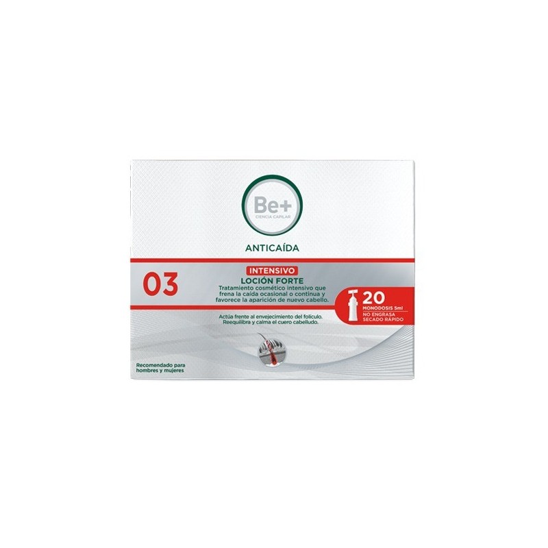 REDUCE LA CAÍDA HASTA UN 89%- EVITA LA CAÍDA DE 15.000 CABELLOS- FAVORECE EL CRECIMIENTO DE HASTA 13.000 CABELLOS NUEVOS- 95% DISMINUCIÓN DEL PICOR Y 90% REDUCCIÓN DE LA SENSIBILIDADESTUDIO DE EFICACIA TRAS LA UTILIZACIÓN CONJUNTA DE BE+ ANTICAÍDA LOCIÓN FORTE, CHAMPÚ Y BE+ CAPILAR USO CONTINUO FORTECOMPRIMIDOS.