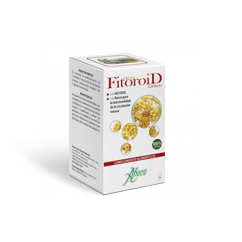NEOFITOROID CÁPSULAS ACTÚA CON UNA ACCIÓN COMPLETA GRACIAS A LA SINERGIA DE HELYDOL, UN EXTRACTO LIOFILIZADO CARACTERIZADO EN FLAVONOIDES Y CONSTITUIDO POR LA FRACCIÓN LIPÓFILA PURIFICADA DE UNA SELECCIÓN ESPECÍFICA DE HELICRISIO, CONOCIDO POR SU ACCIÓN ANTIOXIDANTE, RUSCO, CON ACCIÓN ESPECÍFICA EN EL FUNCIONAMIENTO DE LA CIRCULACIÓN VENOSA, Y POR CENTELLA, QUE ES ÚTIL PARA EL BIENESTAR DE LA MICROCIRCULACIÓN.MODO DE EMPLEO:2 CAPSULAS 2 VECES AL DÍA EN LA PRIMERA SEMANA, CONTINUANDO DESPUÉS CON 1 CAPSULA 2 VECES AL DÍA.