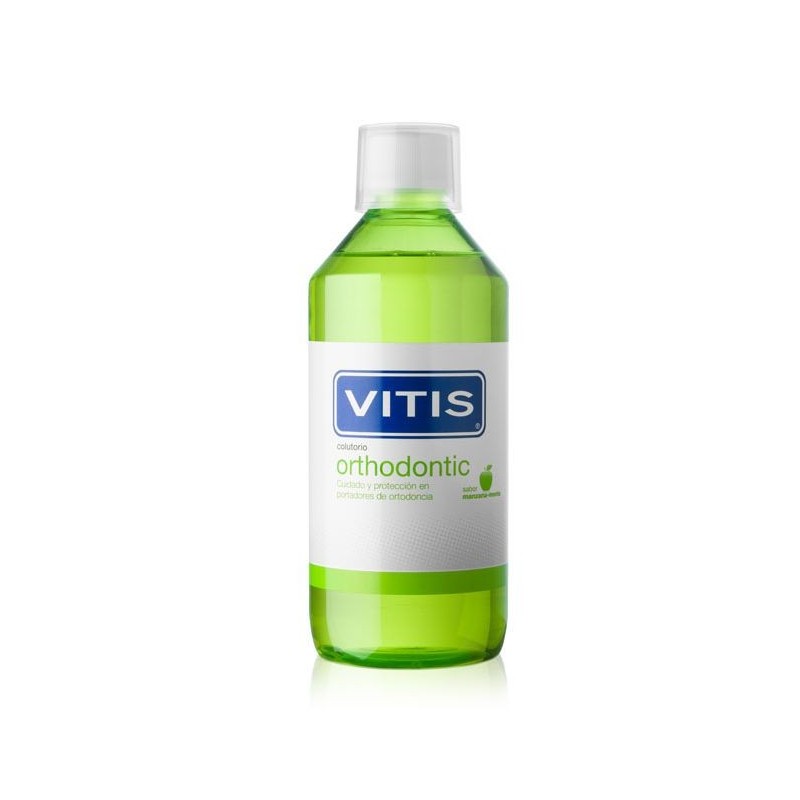 VITIS ORTHODONTIC COLUTORIO ES UN ENJUAGUE DE USO DIARIO FORMULADO ESPECIALMENTE PARA LA HIGIENE BUCAL DIARIA DE LOS PORTADORES DE ORTODONCIA.CON ACCIÓN ANTIPLACA Y REMINERALIZANTE DEL ESMALTE, PROPORCIONA DIARIAMENTE LOS PRINCIPIOS ACTIVOS NECESARIOS PARA MANTENER UNA BOCA SANA. REFUERZA LA ACCIÓN DEL CEPILLO Y LA PASTA PORQUE ALCANZA LOS LUGARES DE DIFÍCIL ACCESO DE LOS APARATOS DE ORTODONCIA Y ASEGURA UNA MAYOR PERMANENCIA DE LOS PRINCIPIOS ACTIVOS EN LA BOCA.EL COLUTORIO ASEGURA EL CUIDADO INTEGRAL DE BOCA, DIENTES Y ENCÍAS DURANTE EL TRATAMIENTO ORTODÓNTICO.