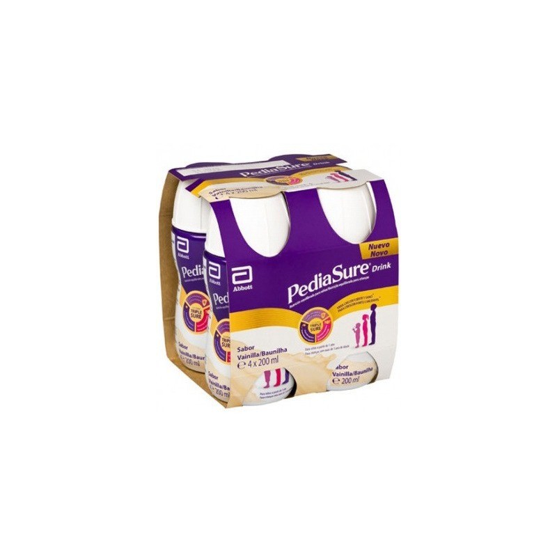 PEDIASURE DRINK VAINILLA 4X200ML ES UN ALIMENTO COMPLETO Y EQUILIBRADO ESPECIALMENTE DISEÑADO PARA NIÑOS A PARTIR DE 1 AÑO QUE NO COMEN BIEN. PROPORCIONA AL NIÑO EL APORTE NUTRICIONAL NECESARIO GRACIAS A SUS NUTRIENTES ESENCIALES COMO VITAMINAS Y MINERALES. CONTIENE HIERRO QUE AYUDA AL NORMAL DESARROLLO COGNITIVO DE LOS NIÑOS.*ES IMPOTANTE MANTENER UNA DIETA VARIADA Y EQUILIBRADA ACOMPAÑADA DE UN ESTILO DE VIDA SALUDABLE.