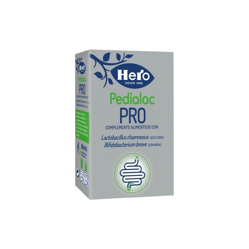 COMPLEMENTO ALIMENTICIO CON LACTOBACILLUS RHAMNOSUS (ATCC 53103) Y BIFIDOBACTERIUM BREVE (DSM 16604). ASÍ, PRO DE HERO CONTIENE LACTOBACILLUS RHAMNOSUS Y BIFIDOBACTERIUM BREVE, DOS BACTERIAS QUE FORMAN PARTE DE LA FLORA INTESTINAL FISIOLÓGICA. EL EQUILIBRIO DE LA FLORA INTESTINAL DURANTE LA NIÑEZ Y LA ADOLESCENCIA ES IMPORTANTE PARA SU SALUD GASTROINTESTINAL, EL SISTEMA INMUNE (PROTECCIÓN FRENTE A PATÓGENOS), LA ASIMILACIÓN DE NUTRIENTES (SÍNTESIS DE VITAMINA K), Y LA REGULACIÓN DEL ALMACENAMIENTO DE LA GRASA CORPORAL. MODO DE EMPLEO: DOSIFICAR HASTA LA MARCA (0.5 ML). TOMAR DE 1 A 3 VECES AL DÍA. NO SUPERAR LA DOSIS DIARIA RECOMENDADA. ES ACONSEJABLE RECONSTITUIR EL PRODUCTO, SEGUIR LAS INSTRUCCIONES: GIRAR, AGITAR, DESENROSCAR Y CAMBIAR POR EL DOSIFICADOR. AGITAR ANTES DE CADA USO. UNA VEZ ABIERTO, CONSERVAR EN EL FRIGORÍFICO Y CONSUMIR EN 15 DÍAS. CONSERVAR EN UN LUGAR FRESCO Y SECO POR DEBAJO DE 25ºC ALEJADO DE FUENTES DE CALOR.