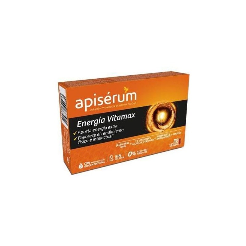 JALEA REAL VITAMINADA DE MAXIMA CALIDAD (30 CÁPSULAS). APORTA ENERGÍA EXTRA Y FAVORECE EL RENDIMIENTO FÍSICO E INTELECTUAL. COMBINACIÓN ÚNICA DE VITAMINAS, MINERALES, AMINOÁCIDOS, JALEA REAL Y GINSENG, DE ACCIÓN ENERGIZANTE. PARA ADULTOS Y NIÑOS MAYORES DE 14 AÑOS. CON INGREDIENTES DE ORIGEN NATURAL. SIN LACTOSA Y SIN AZÚCARES AÑADIDOS. ESTÁ INDICADO:CUANDO SE NECESITA UNA APORTE EXTRA DE ENERGÍA.EN MOMENTOS EN QUE SE NECESITA MAYOR RENDIMIENTO FÍSICO O PSÍQUICO.EN RITMOS DE VIDA MUY ACTIVOS