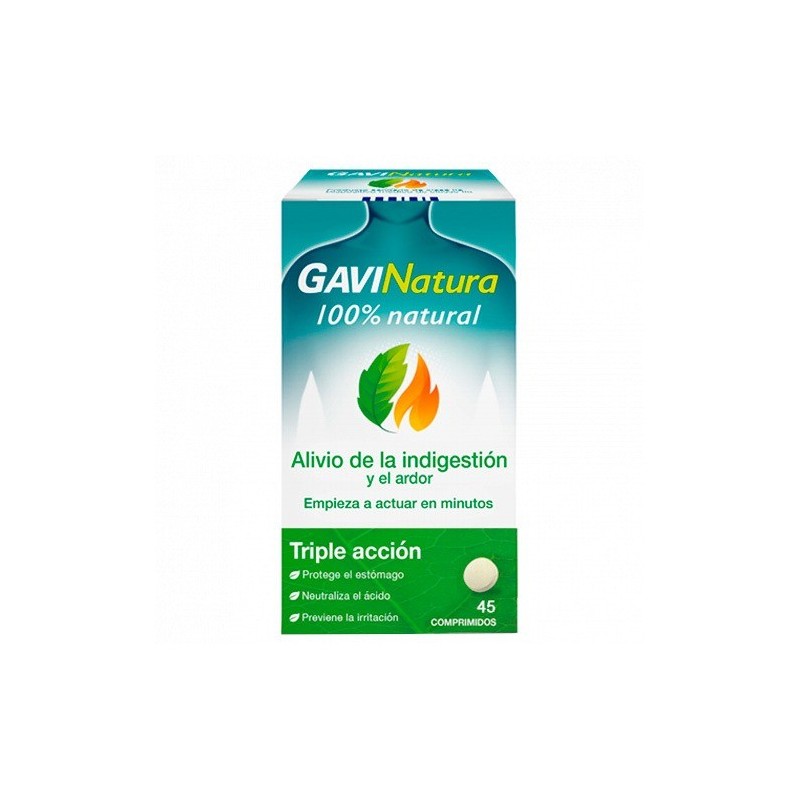 GAVINATURA COMPRIMIDOS AYUDA A ALIVIAR LA INDIGESTIÓN Y EL MALESTAR DIGESTIVO. CON INGREDIENTES DE ORIGEN 100% NATURAL, SU INNOVADOR MECANISMO DE ACCIÓN REFUERZA LOS SISTEMAS DE DEFENSA NATURALES DEL ORGANISMO REDUCIENDO ASÍ SU CONTACTO CON LOS JUGOS GÁSTRICOS Y OTROS IRRITANTES PARA PROTEGER TU ESTÓMAGO, NEUTRALIZAR EL ÁCIDO Y PREVENIR LA IRRITACIÓN.CUANDO LA INDIGESTIÓN Y EL MALESTAR DIGESTIVO APARECEN, LA COMPOSICIÓN CON INGREDIENTES DE ORIGEN 100% NATURAL DE GAVINATURA CON ALOE VERA, MALVA SYLVESTRIS, MANZANILLA Y AROMA NATURAL DE LIMÓN EMPIEZA A ACTUAR EN MINUTOS PARA PROTEGER TU ESTÓMAGO, REFORZANDO SUS DEFENSAS NATURALES.COMPOSICIÓN:COMPLEJO MOLECULAR SINÉRGICO DE POLISACÁRIDOS (DE ALOE VERA Y MALVA SYLVESTRIS) Y MINERALES NATURALES (CALIZA Y NAHCOLITA). FRACCIÓN FLAVONOICA: OBTENIDA A PARTIR DE MATRICARIA RECUTITA. TAMBIÉN CONTIENE AZÚCAR DE CAÑA, GOMA ARÁBIGA Y AROMA NATURAL.INSTRUCCIONES DE USO:PARA ADULTOS Y MAYORES DE 6 AÑOS. DISOLVER LENTAMENTE UN COMPRIMIDO EN LA BOCA SEGÚN NECESIDAD. EN CASO DE ARDOR E INDIGESTIÓN, TOMAR UN COMPRIMIDO DESPUÉS DE CADA COMIDA PRINCIPAL Y UNO POR LA NOCHE ANTES DE ACOSTARSE. EL PRODUCTO PUEDE TOMARSE DURANTE PERIODOS PROLONGADOS, NO OBSTANTE SI LOS SÍNTOMAS PERSISTEN O EMPEORAN, BUSQUE CONSEJO MÉDICO. CIERRE BIEN EL FRASCO DESPUÉS DE USARLO. UTILICE EL PRODUCTO DENTRO DE LOS 6 MESES DESPUÉS DE LA PRIMERA APERTURA DEL FRASCO.INDICACIONES:LOS COMPRIMIDOS DE GAVINATURA SON ADECUADOS: PARA UTILIZAR EN CASO DE ARDOR, INDIGESTIÓN, DOLOR DE ESTÓMAGO E HIPERACIDEZ GÁSTRICA. PUEDE AYUDAR A PREVENIR LOS SÍNTOMAS ASOCIADOS A UNA DIETA POCO SALUDABLE, AL ESTRÉS Y A LA INGESTA DE MEDICAMENTOS ANTIINFLAMATORIOS NO ESTEROIDEOS. GAVINATURA PUEDE SER UTILIZADO DURANTE EL EMBARAZO Y LA LACTANCIA SI ES NECESARIO, SIGUIENDO LAS INDICACIONES DE UN PROFESIONAL SANITARIO.