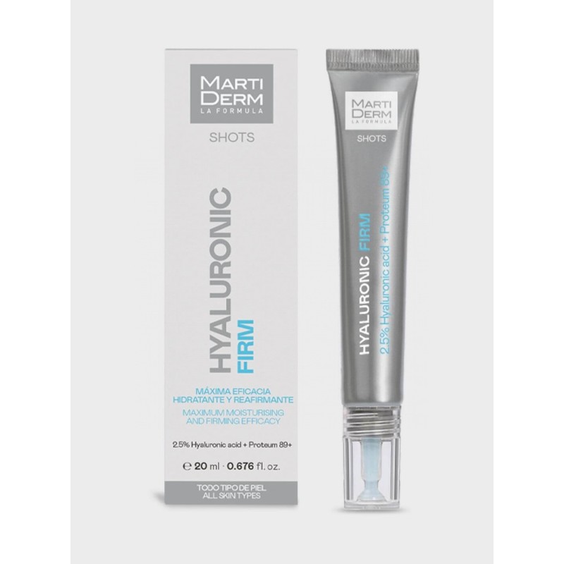 GEL CONCENTRADO CON UN COMPLEJO DE 5 TIPOS DE ÁCIDO HIALURÓNICO DE DIFERENTES PESOS MOLECULARES QUE TRABAJAN EN SINERGIA CON PROTEUM 89+, EL PROTEOGLICANO EXCLUSIVO DE MARTIDERM. APORTA HIDRATACIÓN INTENSA Y DURADERA, AYUDANDO A REDUCIR LA APARIENCIA DE LAS ARRUGAS Y REAFIRMAR LA PIEL PARA UN EFECTO REDENSIFICANTE. TEXTURA LIGERA, FRESCA Y DE RÁPIDA ABSORCIÓN. MODO DE APLICACIÓNAPLICAR POR LA MAÑANA Y/O NOCHE UNA CANTIDAD PEQUEÑA DE PRODUCTO SOBRE EL ROSTRO LIMPIO Y SECO. PERMITE SI SE DESEA LA APLICACIÓN POSTERIOR DE OTROS PRODUCTOS, MAXIMIZANDO ASÍ EL RESULTADO FINAL.