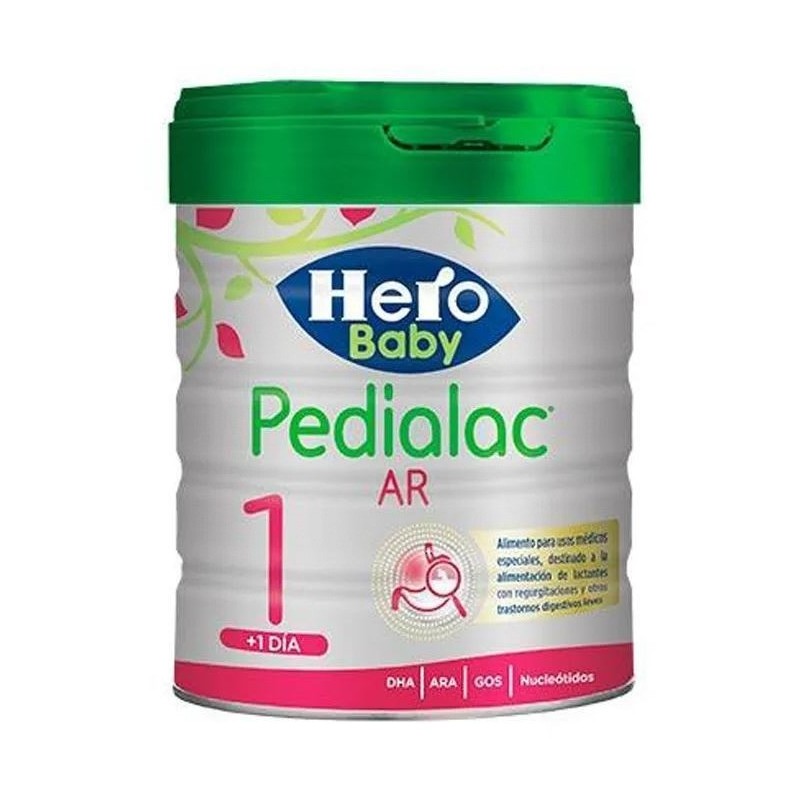HERO BABY PEDIALAC 1 AR ESTÁ ESPECIALMENTE INDICADA PARA EL TRATAMIENTO DIETÉTICO DE LA REGURGITACIÓN Y OTROS TRASTORNOS DIGESTIVOS LEVES.LA LECHE INFANTIL PEDIALAC AR DE HERO BABY ES UN ALIMENTO DE USOS MÉDICOS ESPECIALES. ESTÁ INDICADA PARA EL TRATAMIENTO DIETÉTICO DE REGURGITACIONES Y OTROS TRASTORNOS DIGESTIVOS LEVES, PARA CONTRIBUIR AL CORRECTO CRECIMIENTO DEL BEBÉ, ASÍ COMO A SU BIENESTAR DIGESTIVO.INGREDIENTESLECHE DESNATADA, SUERO DESMINERALIZADO, ACEITES VEGETALES (COCO, GIRASOL ALTO OLEICO, PALMA, SOJA), GALACTO-OLIGOSACÁRIDOS (LACTOSA), MALTODEXTRINA, HARINA DE GARROFÍN, MINERALES (CITRATO SÓDICO, CLORURO POTÁSICO, CITRATO CÁLCICO, FOSFATO CÁLCICO, HIDRÓXIDO CÁLCICO, SULFATO DE HIERRO, CITRATO POTÁSICO, SULFATO DE ZINC, SULFATO DE MAGNESIO, HIDRÓXIDO POTÁSICO, SULFATO DE COBRE, SULFATO DE MANGANESO, YODURO POTÁSICO, SELENITO SÓDICO), ACEITE DE PESCADO, EMULGENTE (LECITINA DE SOJA), VITAMINAS (C, A, D, ÁCIDO FÓLICO, E, K, NIACINA, ÁCIDO PANTOTÉNICO, BIOTINA, B6, TIAMINA, RIBOFLAVINA), CLORURO DE COLINA, ACEITE DE MORTIERELLA ALPINA, TIROSINA, TAURINA, FENILALLANINA, NUCLEÓTIDOS (CITIDINA 5´MONOFOSFATO, ADENOSINA 5´MONOFOSFATO, URIDINA 5´MONOFOSFATO, INOSINA 5´MONOFOSFATO, GUANOSINA 5´MONOFOSFATO), ANTIOXIDANTES (EXTRACTO RICO EN TOCOFEROLES), L-CARNITINA, INOSITOL.ENERGÍA 505 KCAL / 2110 KJ OSMOLARIDAD: 270 MOSM/L