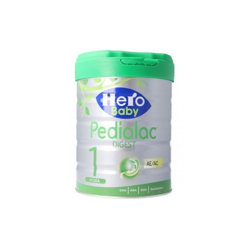 LA LECHE INFANTIL PEDIALAC DIGEST AE/AC DE HERO BABY ES UNA FÓRMULA NUTRICIONALMENTE COMPLETA, CON UNA COMBINACIÓN ESPECÍFICA DE NUTRIENTES. ES ADECUADA COMO ÚNICA FUENTE DE ALIMENTO DESDE EL NACIMIENTO HASTA LOS 6 MESES Y A PARTIR DE LOS 6 MESES COMO PARTE DE UNA DIETA DIVERSIFICADA. FÓRMULA PENSADA PARA LOS BEBÉS A PARTIR DEL PRIMER DÍA DE VIDA.INGREDIENTESLECHE DESNATADA, MALTODEXTRINA, GRASA LÁCTEA, SUERO DESMINERALIZADO (LECHE), ACEITES VEGETALES R ( NABINA, GIRASOL, GIRASOL ALTO EN OLEICO, COCO), GALACTOOLIGOSACÁRIDOS (LACTOSA), CONCENTRADO DE PROTEÍNAS SÉRICAS (LECHE), MINERALES (CITRATO POTÁSICO, CARBONATO CÁLCICO, CLORURO POTÁSICO, SULFATO MAGNÉSICO, CITRATO CÁLCICO, CITRATO SÓDICO, HIDRÓXIDO CÁLCICO, SULFATO FERROSO, SULFATO DE ZINC, SULFATO DE COBRE, IODURO POTÁSICO, SULFATO DE MANGANESO, SELENITO SÓDICO), VITAMINAS (C, E, A, D, ÁCIDO PANTOTÉNICO, NIACINA, B6, K, B1, B12, B2, ÁCIDO FÓLICO, BIOTINA), ACEITE DE PESCADO, ACEITE DE MORTIERELLA ALPINA, CLORURO DE COLINA, TAURINA, INOSITOL, NUCLEÓTIDOS (CITIDINA 5’-MONOFOSFATO, URIDINA 5’-MONOFOSFATO, ADENOSINA 5’-MONOFOSFATO, GUANOSINA 5’-MONOFOSFATO, INOSINA 5’- MONOFOSFATO), EMULGENTE (LECITINA DE SOJA), L-CARNITINA, ANTIOXIDANTES (EXTRACTO RICO EN TOCOFEROLES). MODO DE EMPLEO PREPARACIÓN DEL BIBERÓN 1. LAVARSE BIEN LAS MANOS Y ESTERILIZAR TODOS LOS UTENSILIOS. 2. ES ACONSEJABLE UTILIZAR AGUA MINERAL NATURAL APTA PARA LA PREPARACIÓN DE ALIMENTOS INFANTILES. SI UTILIZA AGUA DEL GRIFO, HERVIR LA CANTIDAD SUFICIENTE ENTRE 1 Y 2 MINUTOS Y DEJAR ENFRIAR. 3. SIGUIENDO EL ESQUEMA DE DOSIFICACIÓN VERTER LA CANTIDAD EXACTA DE AGUA EN EL BIBERÓN. RECOMENDAMOS QUE EL AGUA ESTÉ TEMPLADA PARA UNA MEJOR DISOLUCIÓN DEL POLVO. 4. UTILIZAR ÚNICAMENTE EL CACITO QUE SE ENCUENTRA EN EL INTERIOR DEL ENVASE USANDO EL ENRASADOR PARA DOSIFICAR EXACTAMENTE CADA TOMA. 5. AÑADIR AL BIBERÓN EL NÚMERO CORRESPONDIENTE DE MEDIDAS RASAS Y SIN COMPRIMIR. 6. TAPAR EL BIBERÓN Y AGITARLO HASTA LA COMPLETA DISOLUCIÓN DEL POLVO. INCORPORAR LA TETINA, PREVIAMENTE ESTERILIZADA. 7. PROBAR LA TEMPERATURA DEL ALIMENTO ANTES DE DÁRSELA AL BEBE. UNA VEZ FINALIZADA LA TOMA, TIRAR EL ALIMENTO SOBRANTE Y LIMPIAR TODOS LOS UTENSILIOS UTILIZADOS.