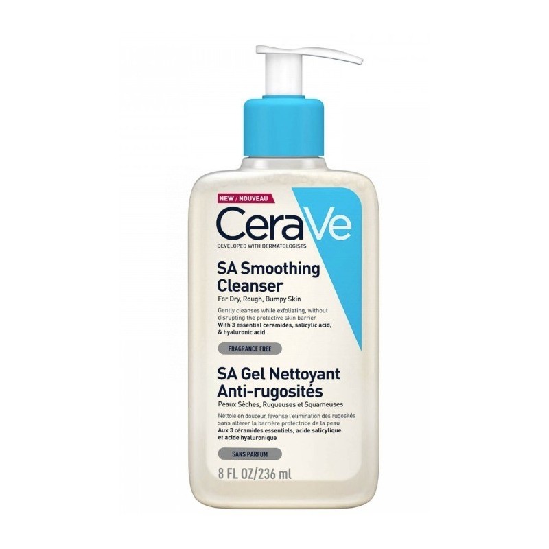 DESARROLLADO CON DERMATÓLOGOS, EL SA LIMPIADOR ANTI-RUGOSIDADES DE CERAVE ESTÁ FORMULADO PARA EXFOLIAR, SUAVIZAR Y LIMPIAR DE FORMA EFICAZ LA PIEL SECA, IRREGULAR Y RUGOSA SIN ALTERAR LA BARRERA DE LA PIEL.DISEÑADO PARA MEJORAR LA TEXTURA DE LA PIEL GRACIAS AL ÁCIDO SALICÍLICO, ESTE GEL LIMPIADOR EN ESPUMA DE TEXTURA REFRESCANTE ELIMINA LA SUCIEDAD, LA GRASA Y EXFOLIA LA PIEL. LAS TRES CERAMIDAS ESENCIALES DE CERAVE AYUDAN A MANTENER SU BARRERA PROTECTORA Y LA NIACINAMIDA APORTA SENSACIÓN DE CONFORT. FÓRMULA HIPOALERGÉNICA, SIN PERFUME Y SIN EXFOLIANTES MECÁNICOS AGRESIVOS QUE NO COMPROMETE LA TOLERANCIA DEL PRODUCTO.ÁCIDO SALICÍLICO: AYUDA A ELIMINAR LAS CÉLULAS MUERTAS DE LA PIEL PARA EXFOLIAR SUAVEMENTETRES CERAMIDAS ESENCIALES: AYUDAN A MANTENER LA BARRERA NATURAL DE LA PIELNIACINAMIDA: AYUDA A CALMAR LA PIELTRES CERAMIDAS ESENCIALES QUE ACTÚAN CONJUNTAMENTE PARA ASEGURAR LA HIDRATACIÓN Y AYUDAR A RESTAURAR LA BARRERA PROTECTORA DE LA PIEL.LA TECNOLOGÍA MVE ENCAPSULA LAS CERAMIDAS PARA GARANTIZAR UNA DIFUSIÓN EFICAZ DENTRO DE LA BARRERA CUTÁNEA Y UNA LIBERACIÓN LENTA A LO LARGO DEL TIEMPO. ESTA TECNOLOGÍA CONTINÚA LIBERANDO ACTIVOS DENTRO DE LA BARRERA PROTECTORA DE LA PIEL, MUCHO DESPUÉS DE QUE HAYAS TERMINADO DE APLICARLO.
