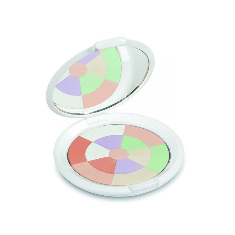 ESTE POLVO COMPACTO, CON TONOS CORRECTIVOS (VERDE, MORADO BLANCO Y BEIGE) SUTILMENTE IRISADOS, UNIFICA EL TONO DE LA PIEL Y FIJA EL MAQUILLAJE. ES IDEAL PARA UN RESULTADO DE MAQUILLAJE LUMINOSO Y FRESCO O PARA ESCULPIR EL ROSTRO ACENTUANDO VOLÚMENES. MODO DE EMPLEO APLICAR CON UNA BROCHA GRANDE SOBRE LA BASE DEL MAQUILLAJE O LA CREMA DE DÍA PARA ILUMINAR TODA LA CARA. PARA ESCULPIR LA TEZ, APLICAR CON UNA BROCHA BISELADA EN LAS ZONAS CURVADAS.