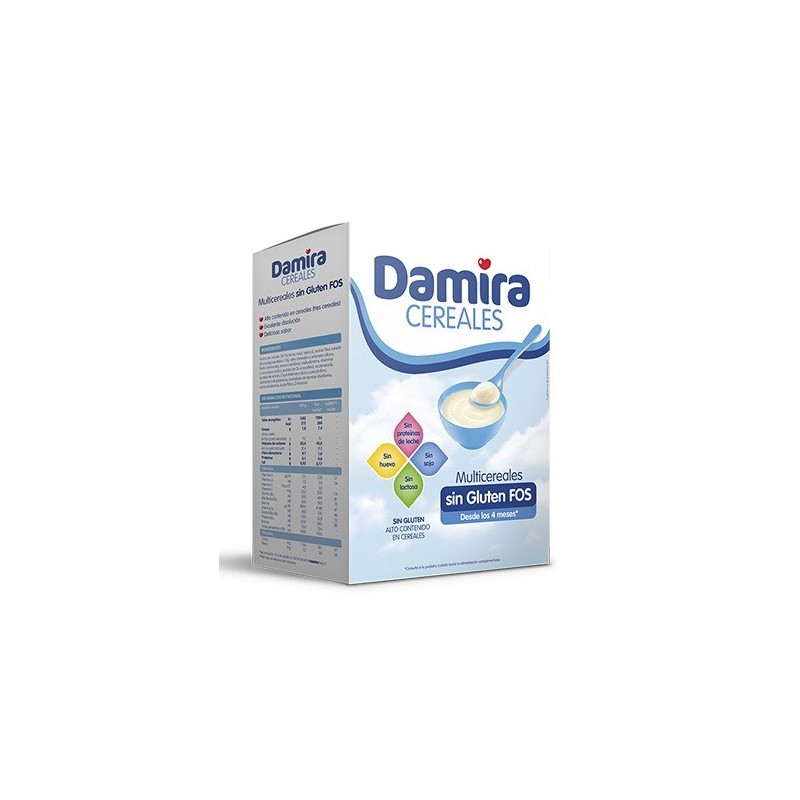 • PAPILLAS DE CEREALES DE INICIO DESDE LOS 4 MESES, SIEMPRE A PARTIR DEL INICIO DE LA ALIMENTACIÓN COMPLEMENTARIA.• PARA LOS CASOS EN LOS QUE SE NECESITE ELIMINAR DE LA DIETA LAS PROTEÍNAS DE LECHE, LA LACTOSA, EL HUEVO Y LA SOJA.• ALTO CONTENIDO EN CEREALES (92%).• CONTIENE 3 VARIEDADES DE CEREALES.• EXCELENTE DISOLUCIÓN, SIN GRUMOS.• CON UNA CONSISTENCIA QUE SE MANTIENE UNA VEZ PREPARADOS.• CON UN DELICIOSO SABOR, NO HACE FALTA AÑADIR AZÚCAR, YA QUE SU PROCESO DE ELABORACIÓN POTENCIA EL DULZOR DE LOS CEREALES.MODO DE PREPARACIÓNEN BIBERÓNAÑADIR AL BIBERÓN DE LA LECHE QUE TOMA HABITUALMENTE EL BEBÉ, DE 1 A 3 CACILLOS DE DAMIRA CEREALES Y AGITAR HASTA SU DISOLUCIÓN COMPLETA.EN PAPILLAPONER EN UN PLATO 200 ML DE LECHE TEMPLADA, DE LA QUE TOMA HABITUALMENTE EL BEBÉ Y AÑADIR DE 7 A 8 CACILLOS (32-36 G APROX.). REMOVER CON UN TENEDOR HASTA CONSEGUIR LA CONSISTENCIA DESEADA.*VALORES CALCULADOS CON EL CACILLO DE DAMIRA NATUR 1 (1 CACILLO APROX. 4,5 G)INGREDIENTESHARINA DE CEREALES (92 %) (ARROZ, MAÍZ, TAPIOCA), AZÚCAR, FIBRA SOLUBLE (FRUCTOOLIGOSACÁRIDOS 3%), SALES MINERALES (CARBONATO CÁLCICO, HIERRO ELEMENTAL), AROMA (VAINILLINA), MALTODEXTRINA, VITAMINAS (L-ASCORBATO SÓDICO, ACETATO DE DL-A-TOCOFEROL, NICOTINAMIDA, ACETATO DE RETINILO, D-PANTOTENATO CÁLCICO, COLECALCIFEROL, CLORHIDRATO DE PIRIDOXINA, CLORHIDRATO DE TIAMINA, RIBOFLAVINA, CIANOCOBALAMINA, ÁCIDO FÓLICO, D-BIOTINA)