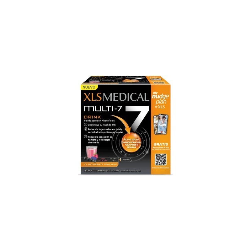 XLS MEDICAL DISPONE DE UNA GAMA DE PRODUCTOS INNOVADORES Y CONSEJOS PARA PERDER PESO PERSONALIZADOS DISEÑADOS PARA AYUDARTE A ALCANZAR EL PESO DESEADO.DISMINUYE EL IMC (ÍNDICE DE MASA CORPORAL)REDUCE LA INGESTA DE CALORÍAS DE CARBOHIDRATOS, AZÚCARES Y GRASASREDUCE LA SENSACIÓN DE HAMBRE Y LOS ANTOJOS DE COMIDAREDUCE CENTÍMETROS DE CINTURA Y CADERASAYUDA A AUMENTAR LA SENSACIÓN DE SACIEDADRESULTADOS DESPUÉS DE UN MESREDUCE EL COLESTEROL EN SANGREXLS MEDICAL MULTI-7 DRINK ESTÁ FORMULADO CON LINUSURE®, UNOS GRÁNULOS FORMADOS A PARTIR DEL EXTRACTO NATURAL DE SEMILLA DE LINO CON UNA GRAN CAPACIDAD DE HINCHAMIENTO, DE FORMA QUE AUMENTAN SIGNIFICATIVAMENTE SU TAMAÑO ORIGINAL Y FORMAN UN GEL VISCOSO E INDIGERIBLE QUE ATRAPA LAS GRASAS DE LA DIETA (ÍNCLUIDO EL COLESTEROL), CARBOHIDRATOS Y AZÚCARES EN EL ESTÓMAGO. ASÍ SE REDUCE LA SENSACIÓN DE HAMBRE, LA INGESTA DE CALORÍAS Y EL NIVEL DE COLESTEROL, AYUDANDO A PERDER PESO DE MANERA EFECTIVA. ESTÁ CLÍNICAMENTE TESTADO*.EL GEL VISCOSO NO SE DIGIERE Y RETRASA EL VACIADO GÁSTRICO QUE EVITA EL AUMENTO REPENTINO DE GLUCOSA EN LA SANGRE, FRENANDO ASÍ LOS ANTOJOS DE COMIDA.