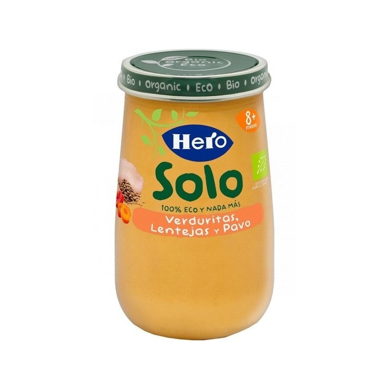 LOS TARRITOS DE CREMA DE VERDURITAS, LENTEJAS Y PAVO ECOLÓGICO HERO BABY SOLO ESTÁN ELABORADOS CON LA MEJOR SELECCIÓN DE INGREDIENTES ECOLÓGICOS PARA ASEGURARLE A TU BEBÉ UNA ALIMENTACIÓN NATURAL Y NUTRITIVA A PARTIR DE LOS 6 MESES. NUESTRO SECRETO, PREPARARLO COMO TÚ LO HARÍAS EN CASA, DE MANERA 100% NATURAL: SELECCIONAMOS LOS INGREDIENTES ECOLÓGICOS DE LA MEJOR CALIDAD, LOS COCINAMOS Y LOS ESTERILIZAMOS AL BAÑO MARÍA PARA QUE SE P