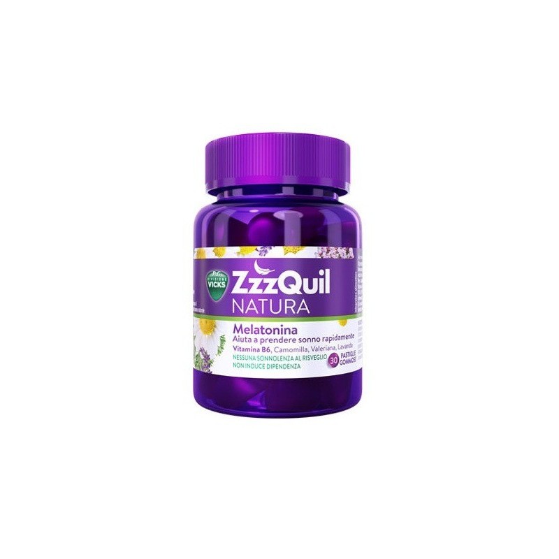 EL COMPLEMENTO ALIMENTICIO PARA AYUDAR A DORMIR DE ZZZQUIL NATURA CONTIENE MELATONINA, UNA HORMONA NATURAL QUE AYUDA A CONCILIAR EL SUEÑO RÁPIDAMENTE. ADEMÁS, SU FÓRMULA EXCLUSIVA A BASE DE VITAMINA B6 Y EXTRACTOS DE CAMOMILA, LAVANDA Y VALERIANA, ESTIMULA UNA EXPERIENCIA NATURAL, PARA QUE DISFRUTES DE LOS BENEFICIOS DEL SUEÑO.EL COMPLEMENTO ALIMENTICIO PARA DORMIR DE ZZZQUIL NATURA SE PRESENTA EN FORMATO GUMMY CON UN ASPECTO Y UNA TEXTURA ÚNICOS. TOMARLOS ANTES DE DORMIR SERÁ TAN ÚTIL COMO AGRADABLE, DE HECHO, CUANDO SE MASTICAN O DISUELVEN EN LA BOCA, LAS GUMMIES DE MELATONINA DE ZZZQUIL NATURA LIBERAN SU AROMA NATURAL A BAYAS.