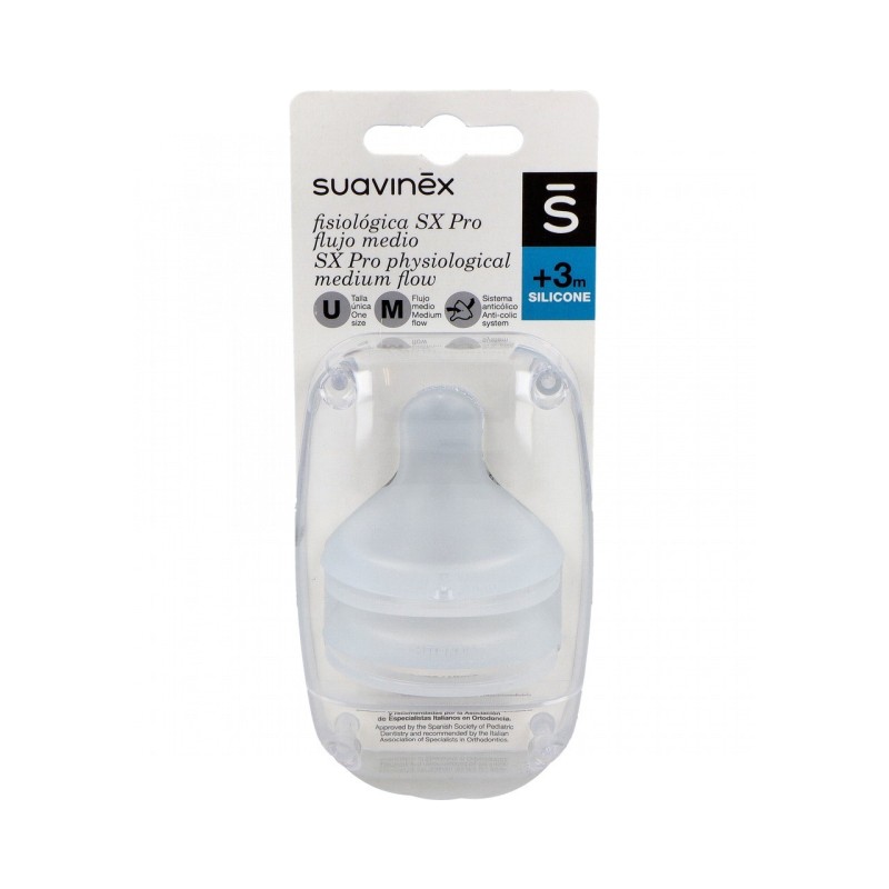 Suavinex Tetina Fisiológica Silicona Flujo M +3M 2uds
