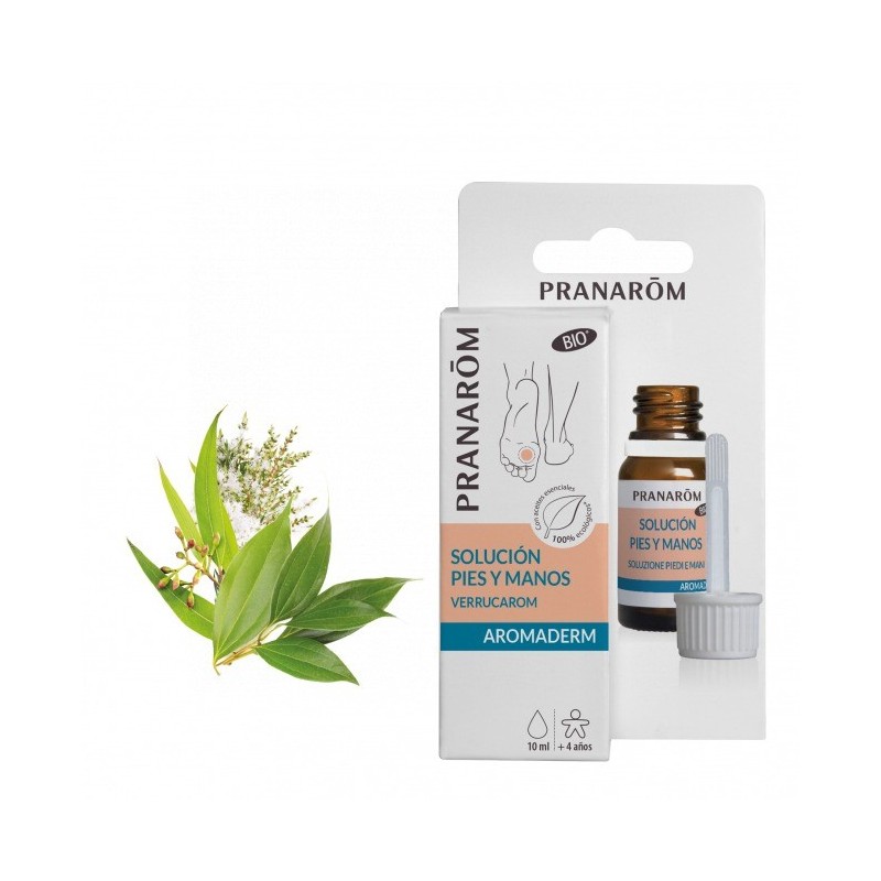 AROMADERM VERRUCAROM SOLUCIÓN PIES Y MANOS BIO* PERMITE ACTUAR CON PRECISIÓN EN LA ZONA GRACIAS A LOS ACEITES ESENCIALES DE CANELA DE CHINA, VERBENA EXÓTICA, ÁRBOL DEL TÉ, NIAULÍ Y EUCALIPTO MENTOLADO, Y AL ACEITE VEGETAL DE RICINO. LA PIEL SE SANEA, SE REGENERA DE FORMA NATURAL Y RECUPERA UN ASPECTO SALUDABLE.DOSIFICACIÓN1 APLICACIÓN 2 VECES AL DÍA, TENIENDO CUIDADO DE NO SOBREPASAR A LA PIEL SANA. CONTINUAR EL TRATAMIENTO DURANTE 2 O 3 SEMANAS.COMPOSICIÓNRICINUS COMMUNIS SEED OIL* (RICINO), CINNAMOMUM CASSIA OIL* (CANELA DE CHINA), LITSEA CUBEBA FRUIT OIL* (VERBENA EXOTICA), MELALEUCA ALTERNIFOLIA LEAF OIL* (ARBOL DEL TE), MELALEUCA QUINQUENERVIA OIL* (NIAULI), EUCALYPTUS DIVES LEAF OIL* (EUCALIPTO MENTOLADO), BENZYL BENZOATE**, CINNAMYL ALCOHOL**, CINNAMAL**, CITRAL**, CITRONELLOL**, COUMARIN**, EUGENOL**, FARNESOL**, GERANIOL**, LIMONENE**, LINALOOL**.*INGREDIENTE PROCEDENTE DE LA AGRICULTURA ECOLÓGICA (CONTROL CERTISYS BE-BIO-01) - BIO PRODUCTO CERTIFICADO CONFORME A LOS REQUISITOS ECOGARANTIE® (CONTROL CERTISYS).